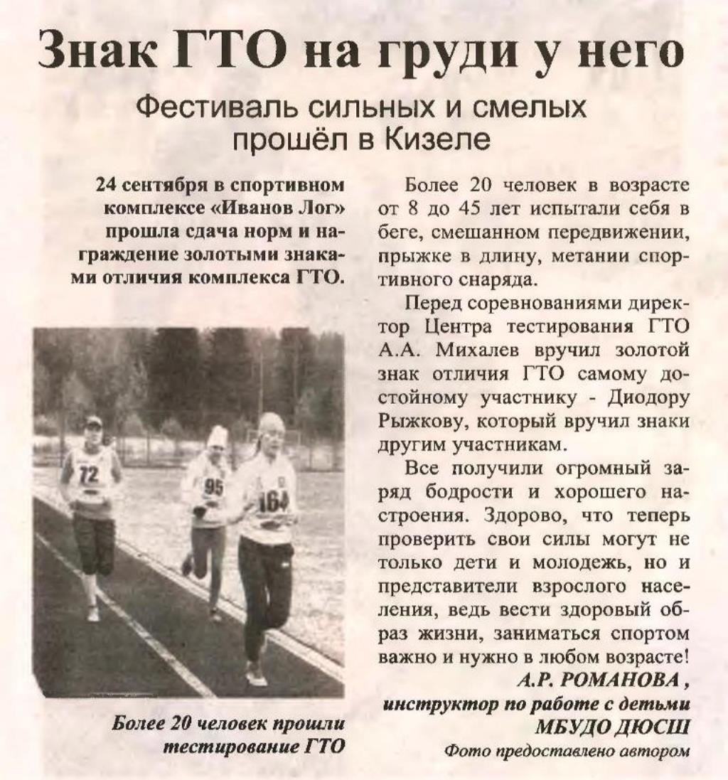"Знак ГТО на груди у него" |