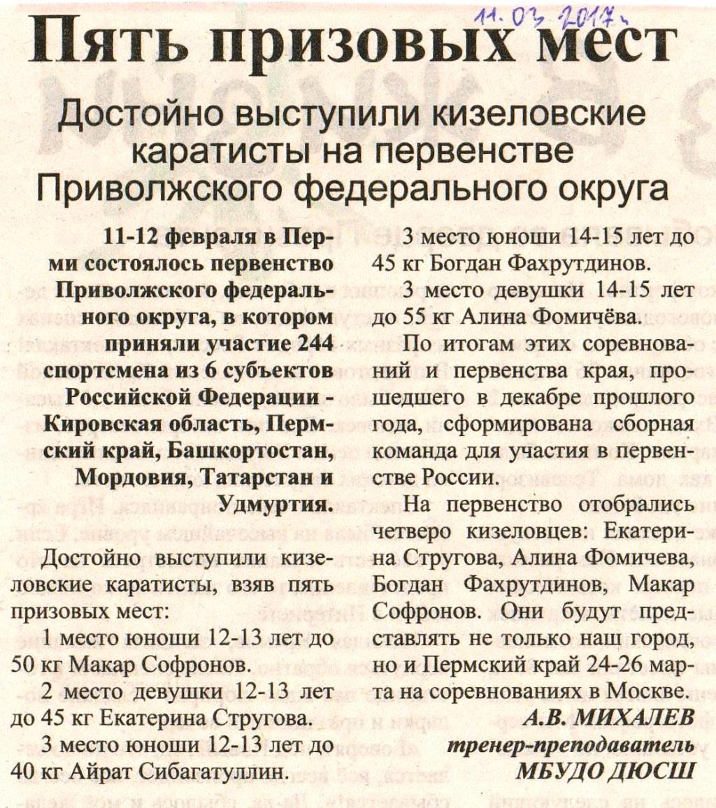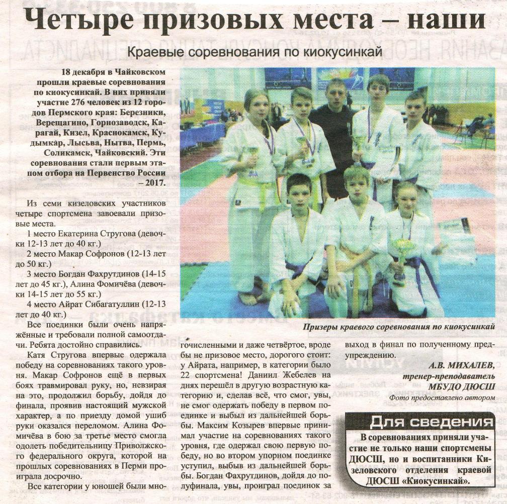 "Четыре призовых места - наши" | |