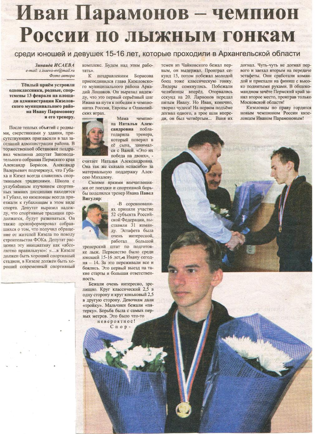 "Иван Парамонов - чемпион России по лыжным гонкам" | |