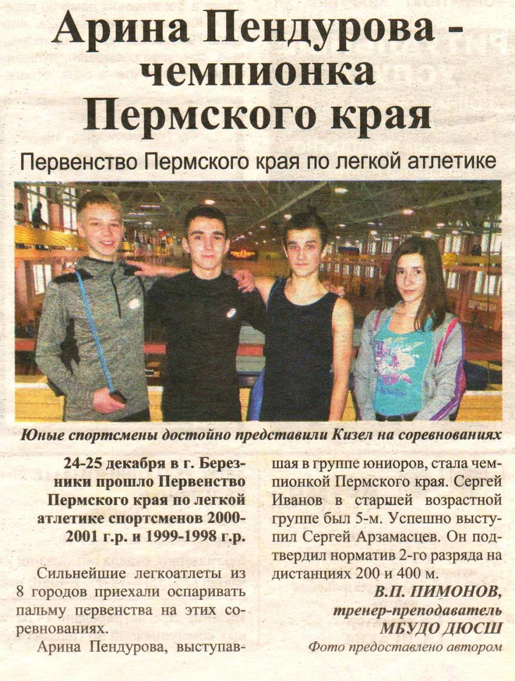 "Арина Пендурова - чемпионка Пермского края" | |