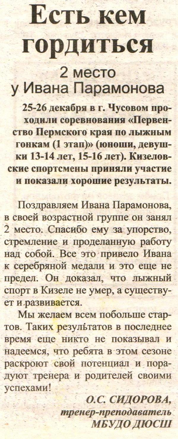"Есть кем гордиться. 2 место у Ивана Парамонова" | |