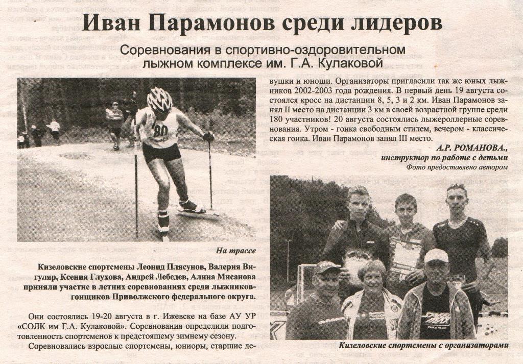 "Иван Парамонов среди лидеров" | |