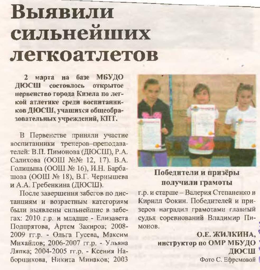 "Открытое Первенство города Кизела по лыжным гонкам" | |