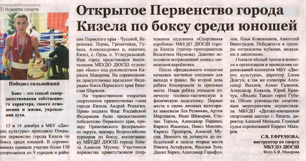"Открытое Первенство города Кизела по лыжным гонкам" |